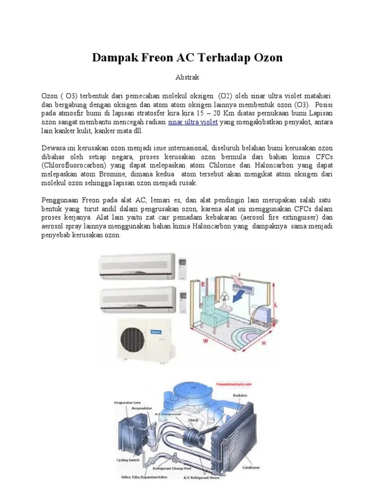 penggunaan alat pendingin seperti ac dan lemari es menghasilkan gas cfc dapat merusak dan membuat lapisan ozon kian menipis. dampak yang ditimbulkan dari penggunaan ac dan lemari es adalah efek rumah kaca, efek ini akan menjadikan panas suhu permukaan bumi meningkat akibat menipisnya lapisan ozon di atmosfer, sehingga menimbulkan pemanasan global. Gas cfc dalam bentuk freon digunakan sebagai gas pendingin pada kulkas dan ac. Sebutkan dampak apabila kadar gas rumah kaca di atmosfer bumi semakin meningkat. ac dan lemari es menggunakan gas freon atau klorofuorokarbon (cfc) sebagai sistem pendinginnya.